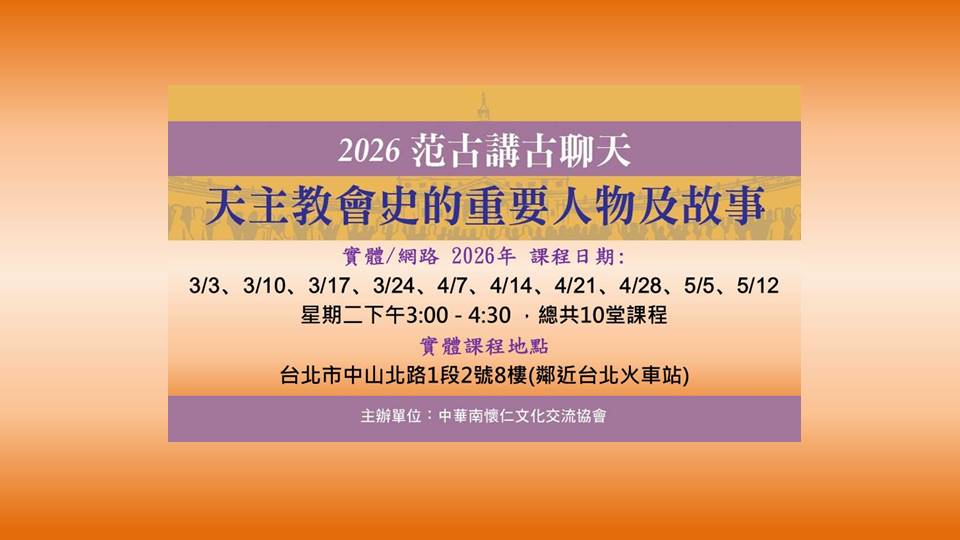 2026范古講古聊天(天主教會史的重要人物及故事)實體與網路課程報名