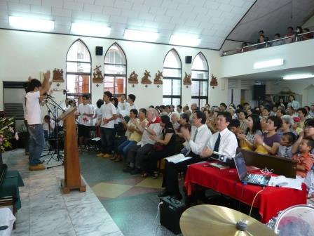為回應洪總主教「萬人歸主」的呼籲,7月18日天主之母堂如期舉行首次的福傳大會。藉聖神的帶領,慕道小組同工們醞釀這次活動,並得到本堂文雅德神父的大力支持。