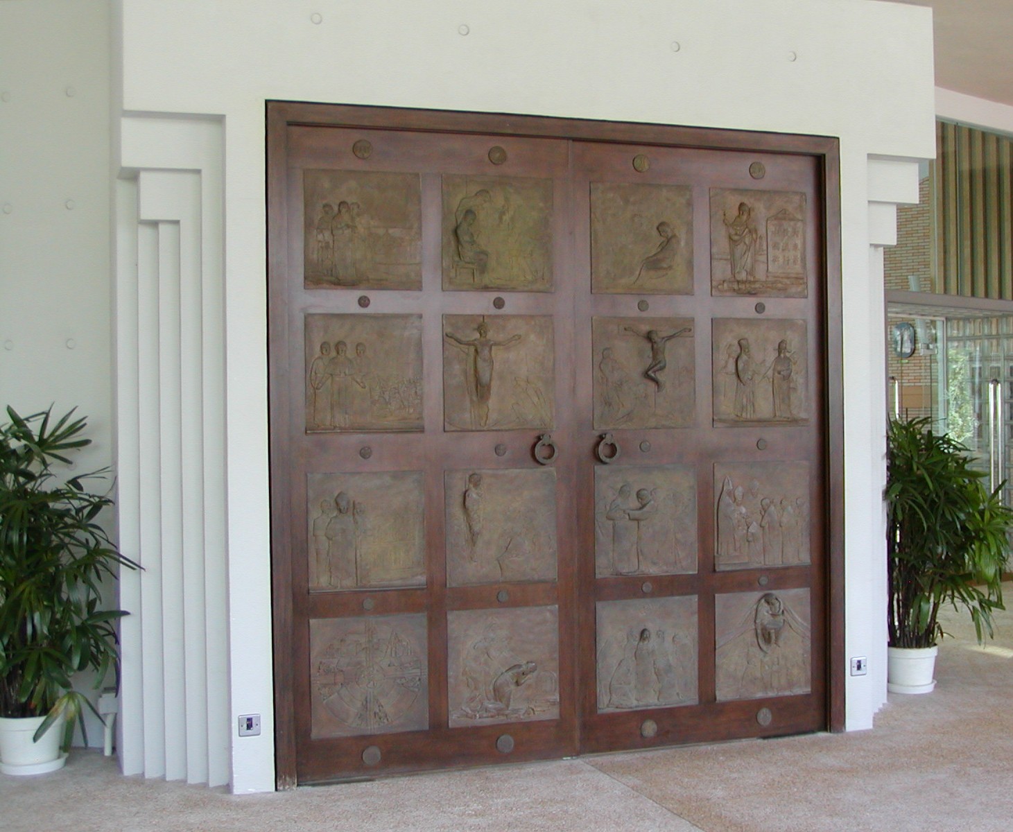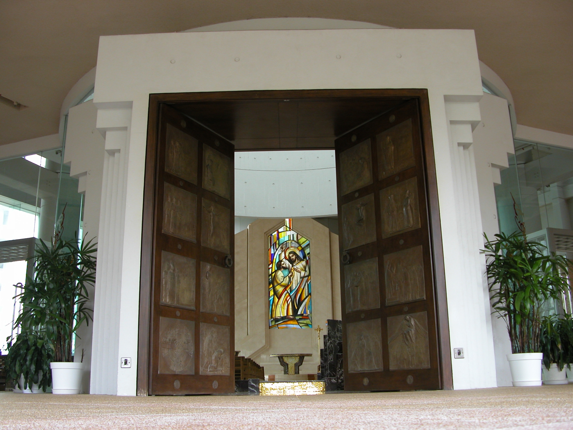 然而在拆除聖堂中的大樑時,發現全部的大樑仍保持其老木的材質,因而決定取下,作為製作聖堂大門的材料。藉著這扇由原聖堂的大樑所做的聖堂正門,希望讓我們回想及牢記,我們繼續在基督所建立的教會(聖堂),虔誠地度福音生活。
