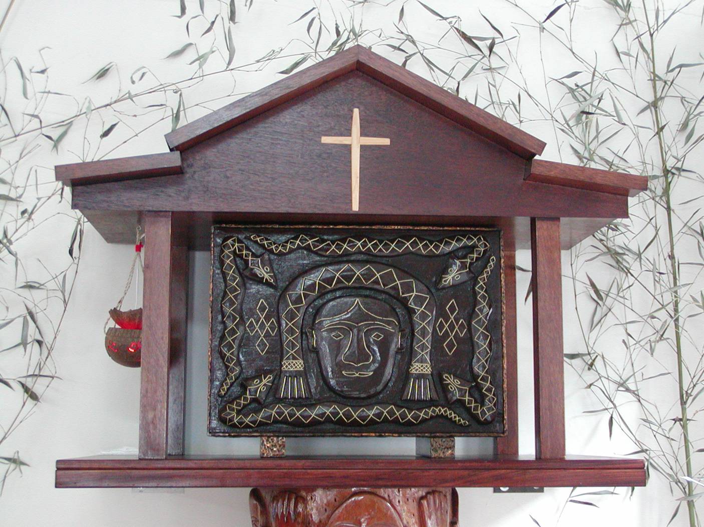 我們知道耶穌是亞洲人,可是西方的耶穌像通常是金髮碧眼,其實那也不是耶穌的本來面目。那麼祂的原來面目是什麼呢?我們都不知道。我之所以喜歡朱財寶弟兄刻的耶穌聖三像,因為那就是一個純樸的原住民心中所認定的聖三樣貌,其中也有很深的文化和神學意涵。