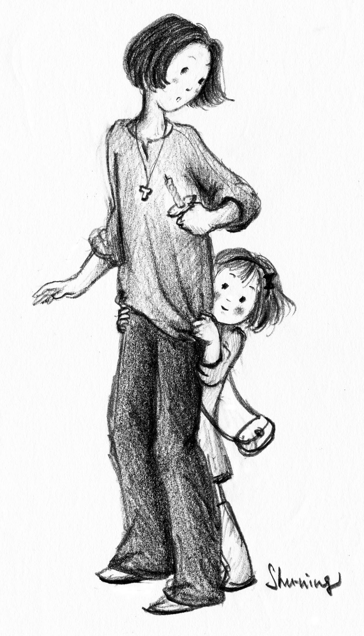 剛開始,小慶乃不掩其孩童與生俱來的天真,一邊在我身上蚯蚓似地磨蹭,一邊略為羞怯地不斷窺視我身旁的內野哥哥,以及他臉上那個看來有點駭人的墨鏡。然而,當我們準備離開聖堂,到庭院的櫻花樹下參與點燃復活蠟的禮儀時,小慶乃卻忽然鼓起勇氣,指著被遺留在跪凳邊的拐杖說:
