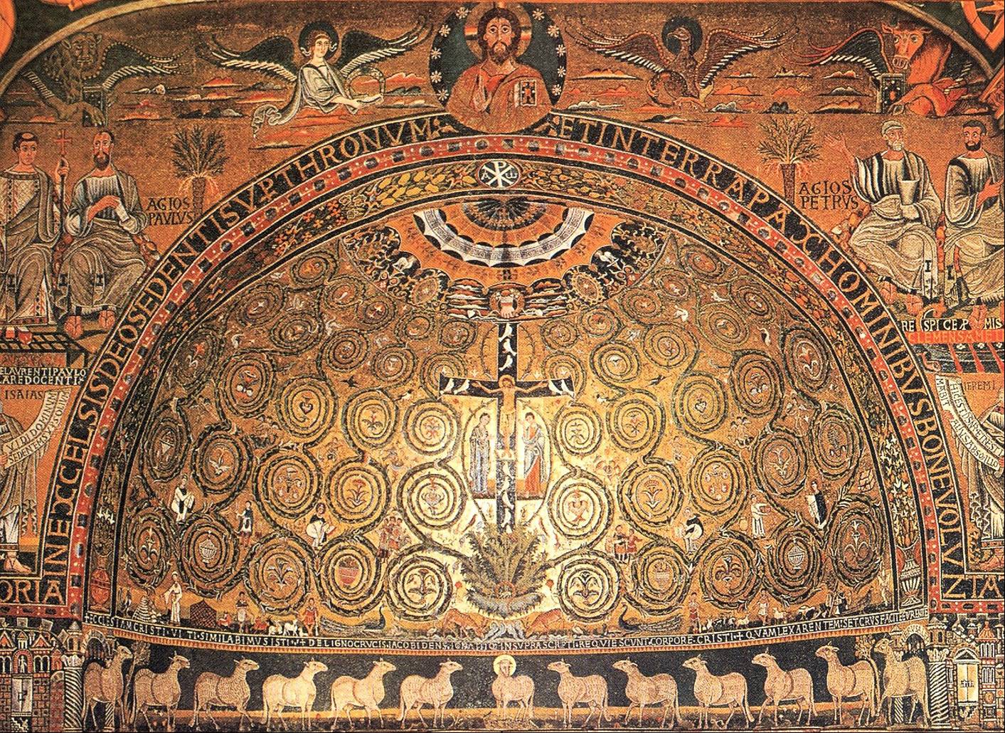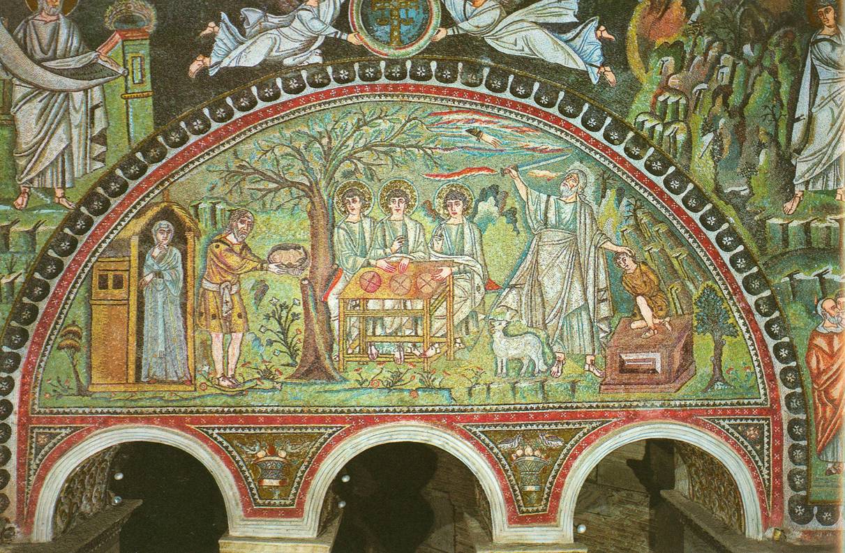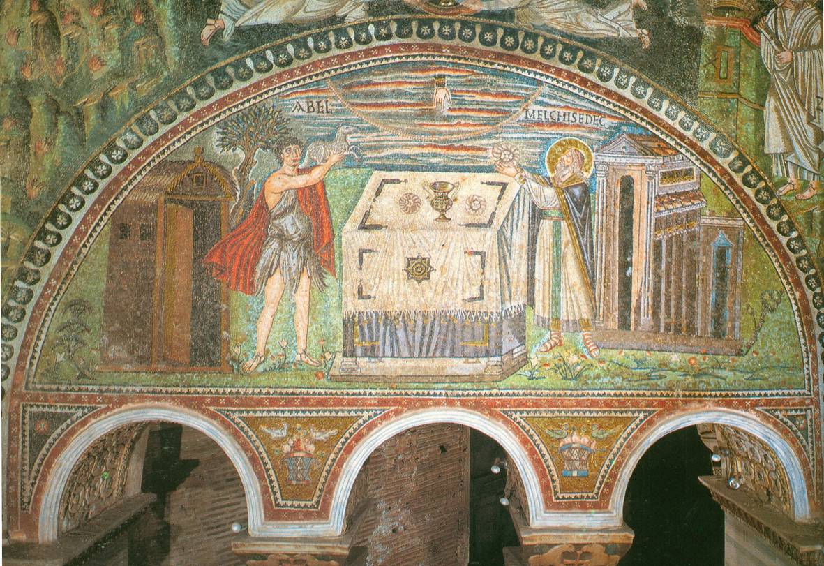 義大利拉文納(Ravenna)的拜占庭式聖維他(Vitale)聖殿祭臺兩側牆面上的鑲嵌畫,以亞巴郎的祭獻,和亞伯爾、默基瑟德的祭獻,來詮釋基督的祭獻,以及我們今天在感恩禮中和基督一起的祭獻。美國首府的國家聖殿(National Shrine)中,將玫瑰經十五端的救恩故事,配上相呼應的舊約故事,以鑲嵌畫並陳於聖殿頂端半圓形壁龕的牆面上,以示舊約和新約的內在性聯繫。當然,米開朗基羅留在梵蒂岡西斯丁聖堂屋頂的「創世紀」,和牆面上的「最後審判」的不朽之作,更顯示了由「原始」到「終末」的永恆!還有,羅馬克來孟聖殿展現的天國景象,以及香港灣仔聖母聖衣堂天國聖筵的預嚐,都吸引著我們參與天國的宴席。