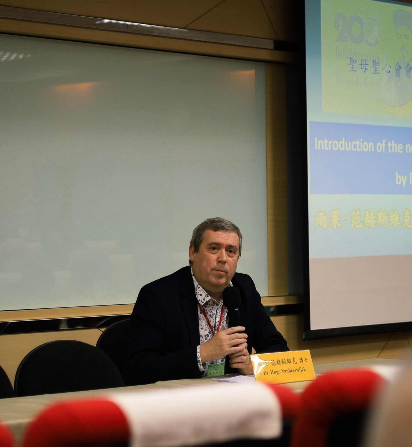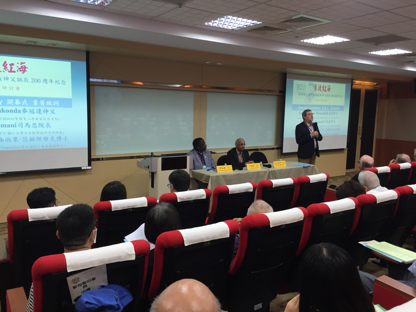 上面這張照片看起來並不是在一項學術會議上的場面,反倒像是在參加一場演奏會。這是聖母聖心會士林瑞德神父(Fr. Frans De Ridde, CICM)在2023年11月11日在輔仁大學天主教術研究院與聖母聖心會、魯汶南懷仁基金會合辦的『勇渡紅海II~紀念會祖南懷義出生兩百週年的國際學術研討會』上發表的一篇文章時所使用的表達方式,新穎、有創意,更是令人耳目一新。