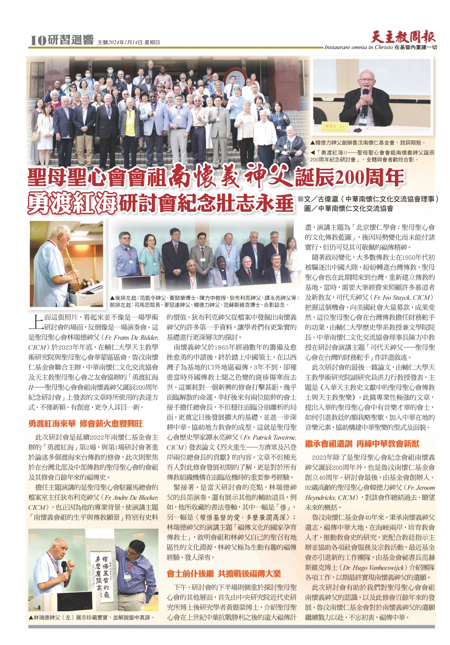 聖母聖心會會祖南懷義神父 誕辰200周年紀念 - 國際學術會議 (天主教周報刊登活動報導)