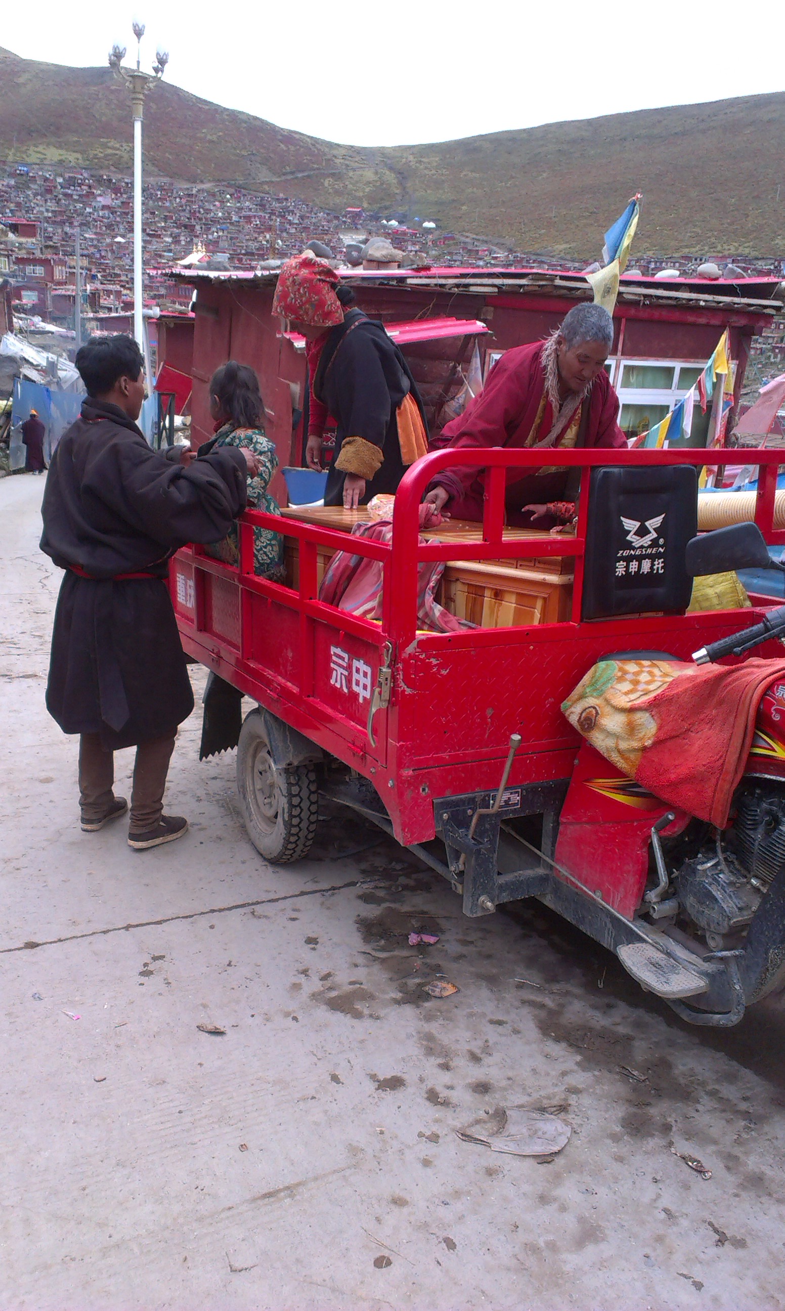 五光十色的紐約,卻讓我回想起在青康藏高原遇見,從青海出發往拉薩朝聖的一對老夫婦:身上傳統藏人服飾如同臉上的古銅膚色,已歷經風霜,一前一後,兩人連拉帶推著最原始的兩輪板車,車上灰樸樸的鍋碗瓢盆,就是全部的裝備了。導遊小黃解釋:他們先把二輪車推到前方紮營地安置之後,再調頭回到起點,三步一拜,九步一跪,以最隆重的敬禮,完成朝聖之旅。