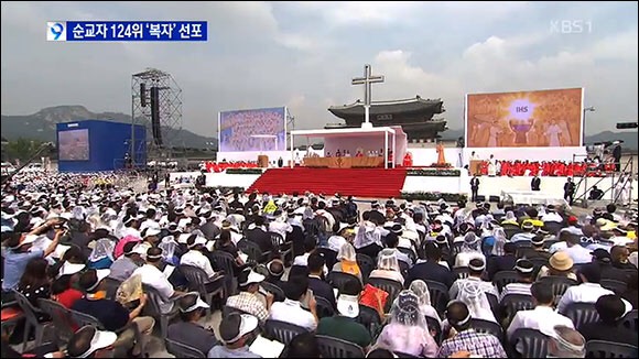 2014年8月16日於韓國首爾光化門廣場、教宗方濟各主持此宣真福禮儀
