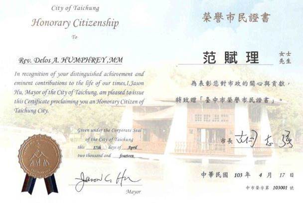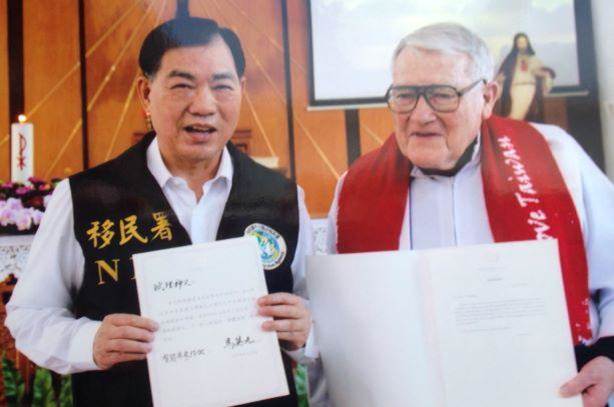 2014年,4月27日,南屯天主堂高福南神父為我準備了感恩祭及歡送會,移民署副署長何榮村代表馬英九總統參加並且致贈賀禮給我。十天前台中市胡志強市長也頒發榮譽市民證書給我,我在回應胡市長的致辭時,特別提到市政府在南屯天主堂土地重劃事件,請求市長協助,不要損及教堂權益。市長當場允諾,要我安心返美,他會處理,這件事讓我甚感心慰。4月29日,我終於告別了臺灣回到美國瑪利諾會紐約總部安養中心。