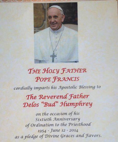 2014年晉鐸60週年獲頒教宗方濟宗座祝福
