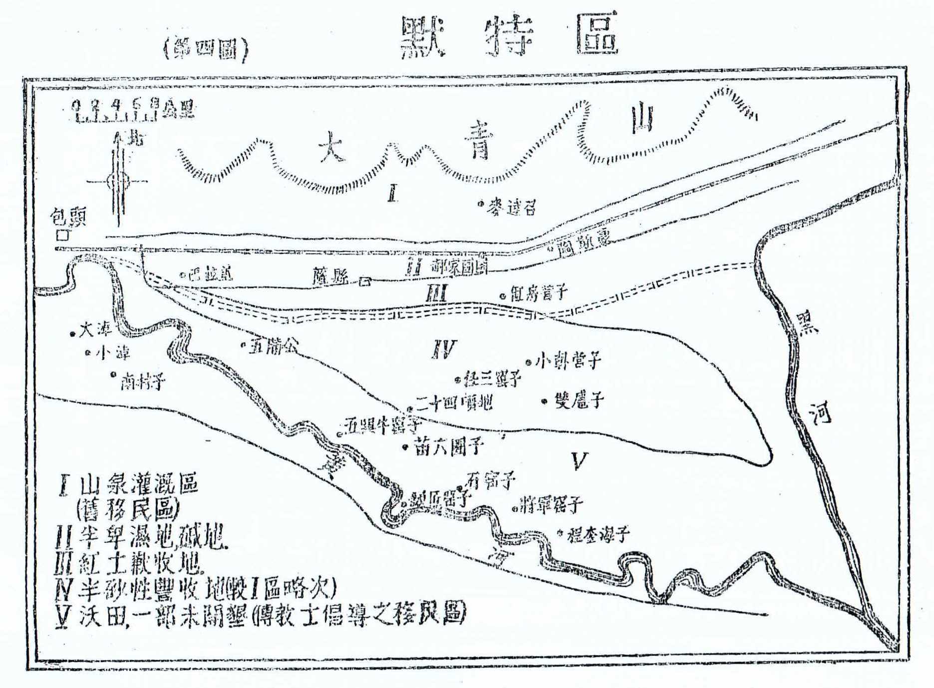 因為這一帶地土堅硬,差不多無人承種,土默特蒙人,只把它當作牧場。起初教會零碎收買,開闢試種,他們試驗的結果,發覺這一段土地,若能將上層膠土翻下,將下邊沙土挖起來覆在上面幾寸,就最易耕種,而且會有豐富的收成,但這一番挖掘的費用,較原置地價,要高出15倍以上。