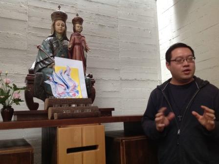 有一位參加者把畫冊放在聖母像那裡,打開了「愛的娃娃」的一頁,代表聖母給了我們降生成人的耶穌;而另一位則把畫冊放聖母跟前,祈求瑪利亞轉禱,代表要效法聖母,與聖母一樣讓自己成為天主的藝術創作……